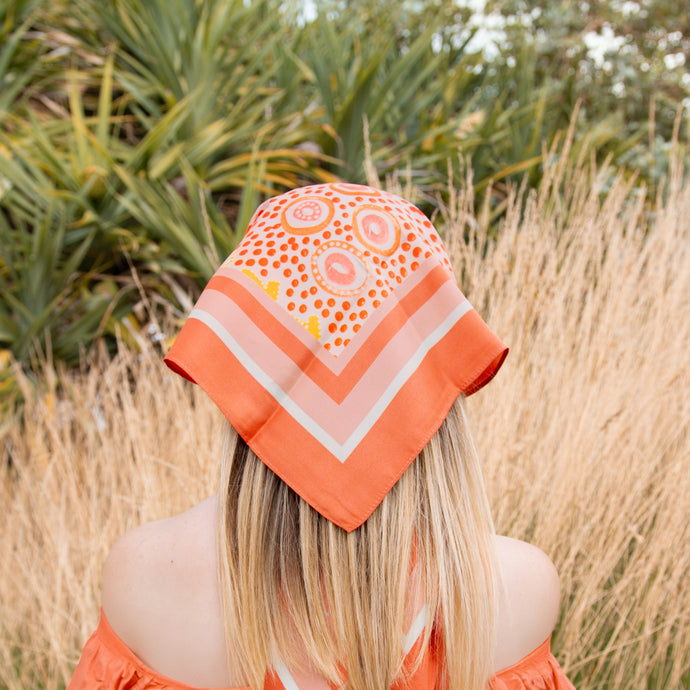 Featuring artwork by Indigenous artist Sheri Skele, this Limited Edition scarf symbolises Sodashi's journey and connection to Indigenous traditions.