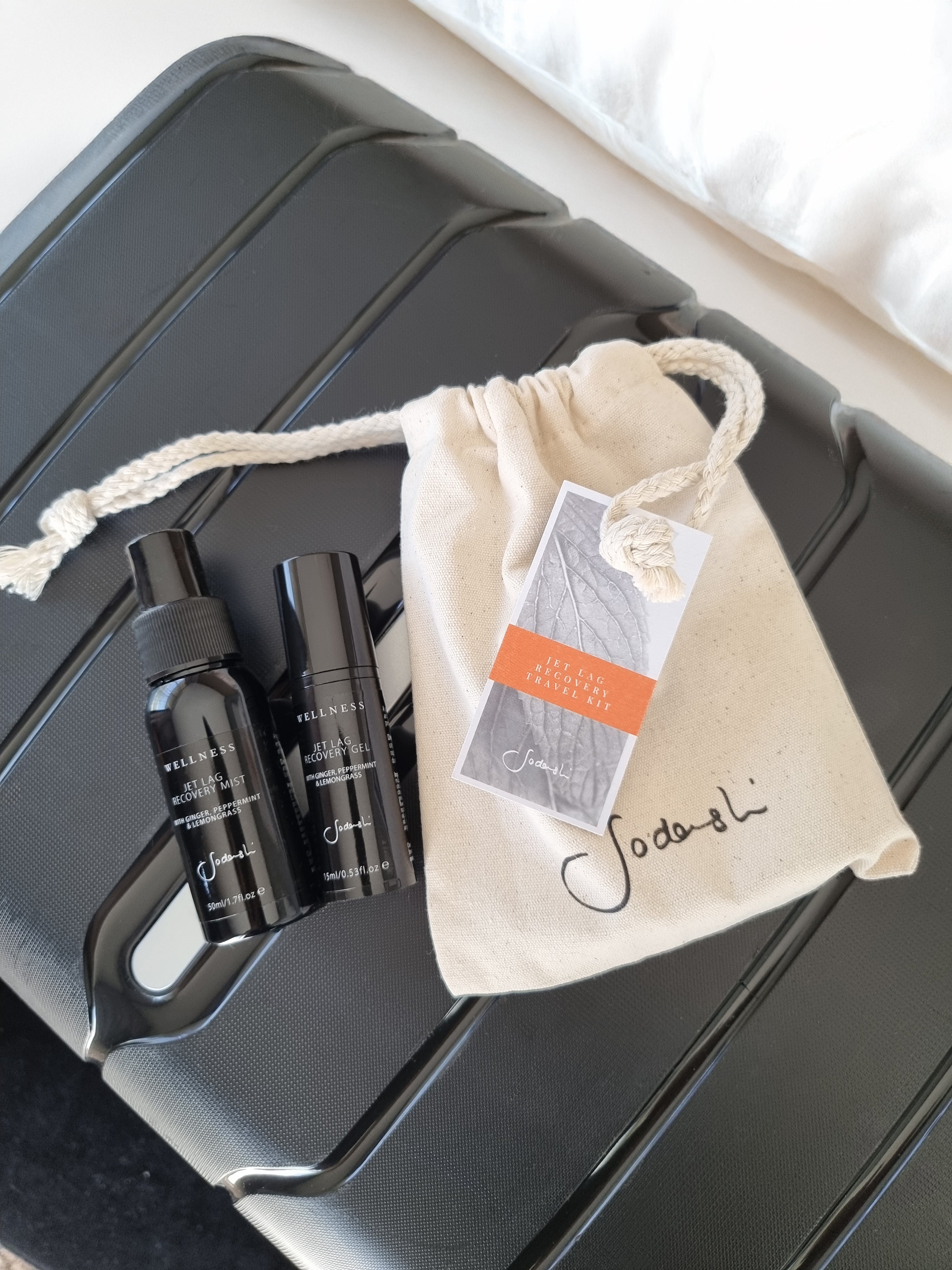 2. Spray Jet Lag Recovery Mist over your face and body as often as required, avoiding contact with your eyes.